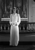 Utställning om halländsk stickning, binge, på Kållereds bibliotek, år 1983. För mer information om bilden se under tilläggsinformation.