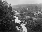 Uppe till vänster ser man Järnvägsstationen bilden är tagen från kyrktorn Text under bilden: "Efter Falu-Rättvik-Mora-Orsa banan: Station med omgifning."