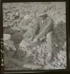 Grythyttans skifferverk 6 april 1968. En stenhuggeriarbetare i förgrunden.