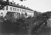 Vägbygge vid Ekbacken. Villorna, till vänster, ligger på Herrängsvägen. I fjärran ses tornet på Heliga Trefaldighetskyrkan och Centralföreningens silo.