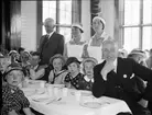 "I väntan på A. U. S.-matsalens fröjder", stående är ordförande i sångartingets arbetsutsskott folkskollärare J F Ahlzén samt doktorinnan Bratt och fru Lindsjö