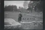 Sommaren 1951 genomförde Östergötlands museum inventering av äldre bebyggelse inom Ydre kommun. Under arbetet på Asby udde träffade museets utsända bygdefotografen August Christian Hultgren, som här ses i full auktion.