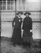 "Lina Bodén och A. Martinsson. 1/50s. f. 11. 14.00 och förstärkt sol. 30/4 1916. Imperial." Porträtt av två kvinnor utomhus framför ett bostadshus.