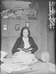 "Agda på sin soffa i skymningstund. 20 s. f. 6,6. 13/6 21:30, halvklart. Imperial." Kvinna läser en bok på soffa, Härnösand.