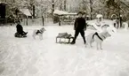 Lek med kälke och klättring vid daghem i Varberga, oktober 1967
