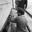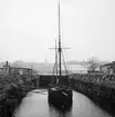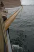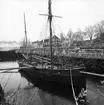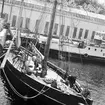 Skärgårdsångaren VÄSTAN i Vaxholms hamn. I förgrunden en ketchriggad segelbåt.