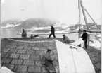 "Örnen" omedelbart efter landningen på isflaket den 14 juli 1897. Framtagning av bilderna gjordes av docent John Hertzberg år 1930 på Fotografi, Tekniska Högskolan.