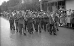 "Med flygande fanor och klingande spel". Folknykterhetens dag. (Korsningen S:t Olofsgatan - Odengatan). Mössebergs musikkår. Från utställningen "Falköping i bild" 1952.