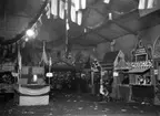 "Hantverkarmässa i Uddevalla 1912 i ridhuset. Montrar med olika företag." enligt tidigare notering