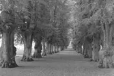 Enligt fotografens noteringar: "Trädgården." Plats: Drottningholm, Stockholm Datum: 28 Juni 1897 Tid: Kl 6.30 e.m. Ljus: Solsken Bländare: No 2 Objektiv: Svenska Express Exponering: Hastighet No: 2 1/2 Framkallning: Hydroechinon, Eikonogen Anmärkningar: "Underexponerad ! Hål i Kameran !"