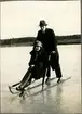 Skridskoåkning på Kristinaplan, Gävle, 1957. Ett barn med sparkkälke.