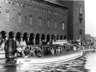 Stockholms Stadshus under färdigställande. T.h. "Gjörkes" bad som låg i vattnet öster om Vasa-bron.