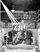 Julskyltning, Ballonger exploderade 4 dec 1967 Ett barn håller en ballong i handen, och en jultomte står bredvid.