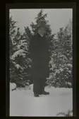 "Trädgårdsarbetare, Fogelstad" Porträtt av en ung man ståendes ute i snön.