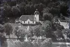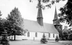 Kyrkan av sandsten från 1100-talet välvdes på 1400-talet och förlängdes 1767 mot öster med ett tresidigt kor. År 1888 revs allt utom det medeltida långhuset och kyrkan omändrades till samlingslokal. Den återinvigdes 1915 efter viss upprustning, och 1965 byggdes ett nytt smalare kor på det ursprungliga romanska korets grund. Långhusvalven har kalkmålningar från ca 1640. Predikstolen är daterad 1691. Kyrkan äger ett triumfkrucifix från 1400-talet och två skulpturer av Maria och Johannes från ca 1200, vilka flankerat en äldre Kristusbild. Den skulpterade dopfunten är samtida med kyrkan. http://www.ne.se/jsp/search/article.jsp?i_art_id=224273