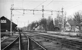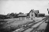 Borås nedre station sedd från gatusidan. Godsmagasinet till vänster i bild. Stationen uppfördes 1894 och fick då namnet Borås Nedre. 15 maj 1930 bytte stationen namn till Borås Central.