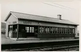 Daterar från 1910 som hållplats. Station anlagd 1932. En- och enhalvvånings stationshus, putsat. Elektrisk växelförregling.