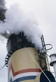 Röken bolmar ur skorstenen på fartyget.