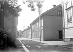 Skara. Kvarteret Kräftan. Veterinärinrättningen sedd från bron till Stadsträdgården.