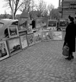Skara. Vårmarknad 19.. Mannen i basker är Carleskog på Bergers bokhandel.