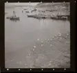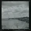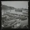 Text på montering i arkivet: På kajen halv 7 på morgonen i väntan på fiskebåtarna. Fiskförsäljerskor sittande vid skjulet "Fiskarnas fiskexport".