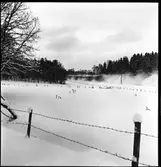 Vy över ett landskap med en sjö i bakgrunden. Text i album: "Utfärd till Dalarne med Isaac Westergren och Albin Ekblom med Rolls-Royce, 1925".