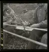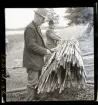 Text på montering i arkivet: Man bereder sig att hala upp det 90 famnar vida bottengarnet.