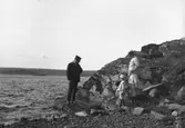 Enligt senare noteringar: "Från vänster Anna Johansson och till höger Henry Hansson och Viborg Johansson".
