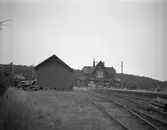 Bangatan och gatusidan av järnvägsstationen i Hjo.