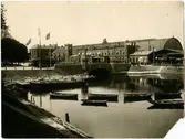 Porträtt av ett brudpar från början av 1900-talet. Lima, Dalarna i enkelt uppbyggd studio med en enfärgad bakgrund placerad på det nakna brädgolvet.