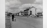"På S:t Sigfridsgatan". Korsningen S:t Sigfridsgatan-Fredriksbergsvägen. Från utställningen "Falköping i bild" 1952.