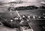 Flygfoto över Sandby kyrka och kyrkogård.