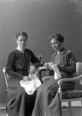 En bild från Brämen. Här sitter Eva Brundin och Lilian Holmstedt, en kusin, och broderar. Även Sören Brundin försöker sig på den konsten.