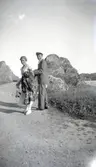 Fotografi från expedition till Grönland. Motiv av barn som står på stenig strand och tittar ut över havet.