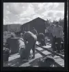 En carrier har just hämtat en färdigbyggd bil i ut-stationen.