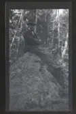 I mitten: Ränna och hjul till en spånhyvel i skogen vid Pelarne.
