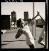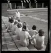 Tre pojkar gör gymnastik: "Giv akt och ledigställning". Vykort N:o 3 utgivet av föreningen G. C. I. / Gymnastiska Centralinstitutet
