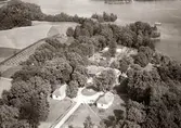 Från stadsträdgården med Hornborgastugan i förgrunden, 1940-talet.