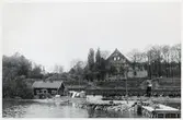 Kajen efter Strandvägen i Stockholm. Nordiska museet syns bakom vedskutan.
