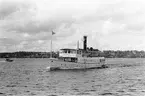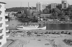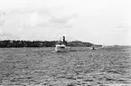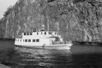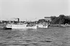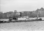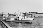 Foto visande passagerarmotorfartyget "VÄSTAN" av Vaxholm på slipen Mälarvarvet, Stockholm, 1973-03-06.