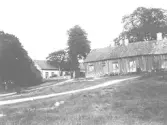 Text under bild: Gammal bondgård i Skrea. I Hallands slättbygder äro husen vid de äldre bondgårdarna liksom i Skåne och på Öland sammanbyggda i fyrkant till skydd mot slättens vindar.