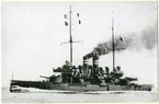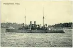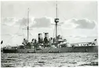 H. M. Pansarbåt Vasa Imp. Axel Montelius JLUSTR Aug. Bellander Hamburg [på baksidan har C. G. Jackson skrivit:] "Passerade Ytterslängan kl 1120 fm. lördagen den 1 augusti 1914."