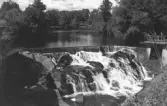 Bällforsen i Ätran, Gällared. Vattenfall och en kvarnbyggnad på andra sidan forsen. Oklart om Hellman är ursprunglig fotograf, eller reprofotograf.