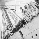 Simning vid Vitsgarn. I bakgrunden torpedkryssare, sannolikt PSILANDER. Längst bort till v vid Märsgarn skymtar det stora segelfartyg som även ses på Fo229259C och Fo229261C.