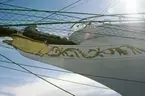 Estniskt scoutmärke: Örnformad brosch, med texten "Alati Valmis". Togs med på flykt från Estland år 1944.