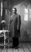 Ung man i överrock och keps på trappa, 1920-tal