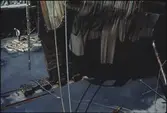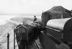 Kung Karl sn, Kungsör. Skeppsvrak i Arbogaån. Vid vraket 1977 (Sjöhistoriska): Dykarna Ing-Bert Westerberg och Lars Gillberg med skeppets akter, byggd i gran (eller furu?).