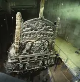 Vasamodellen i skala 1:10 flyttas in i Vasamuseet. Akterspegeln.