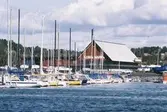 Albin Nova i Fiskebäcks hamn. Representant från Albin Marin i sittbrunnen. I bakgrunden Albin Marins anläggning.