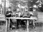 Ernst Lundberg, som varit i Amerika, förde bl.a. med sig konsten att göra "seider" (cider= ett slags äppelvin). Det var fruktansvärt i smaken enligt David Karlsson, Skaga. (död 1965). Fr.v: 1. Anton Emil 2. Ernst Lundberg 3. Karl Lundberg 4. August Jansson Reprofotograf: Gunnar Berggren.